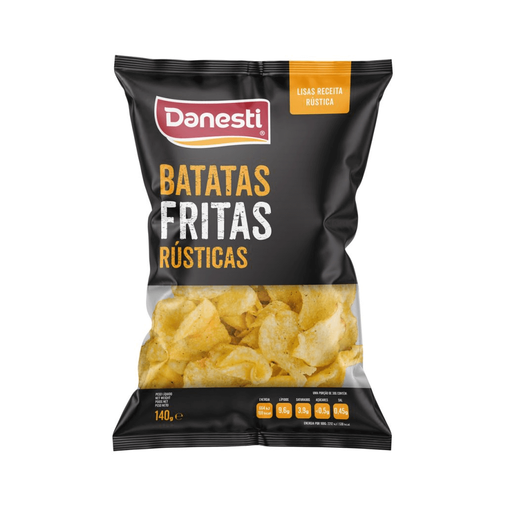 Ingredientes | Batatas (66,5%), gordura vegetal de oleína de palma (32%) e sal (1,5%). |